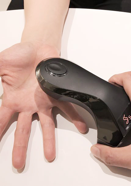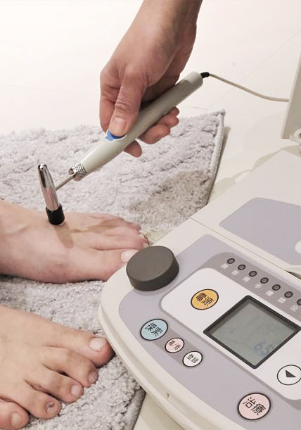 経穴(ツボ)に微量の電流を流し、全身の氣の流れを測定し可視化。施術前に測定することで、その日の体の状態を把握し、施術内容に反映します。