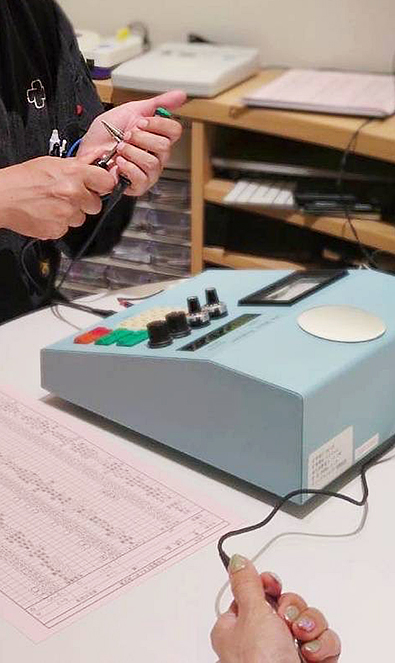 血液が動脈を流れる音から、全身の血行を測定しグラフ化。波形の形によって体質を分類し、主に臓腑系の弱点を把握するヒントにします。