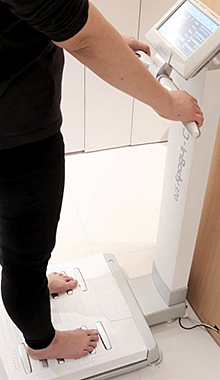 体重、脂肪、筋肉、骨密度、ミネラルなどから、体の状態を細かく測定。どこがどのようにバランスを崩しているかを発見し、改善の指標にします。